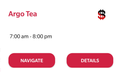 When we had our transfer student test the app, he thought that the card signified locations that accepted credit cards and thus the dollar sign meant places that accepted cash. When we started coding the app up, I redesigned the card icon to look like the front of our IDs to clarify this ambiguity.